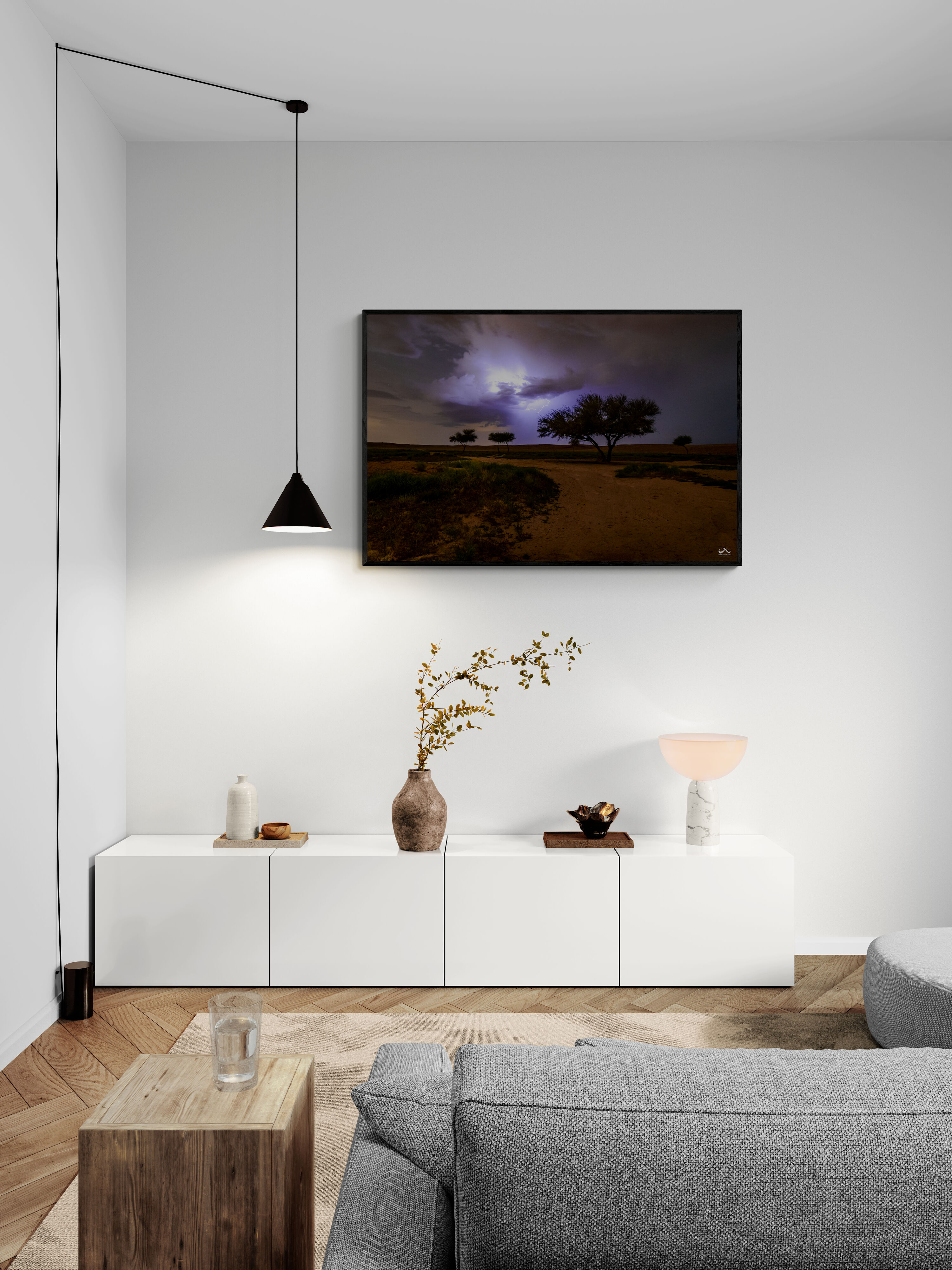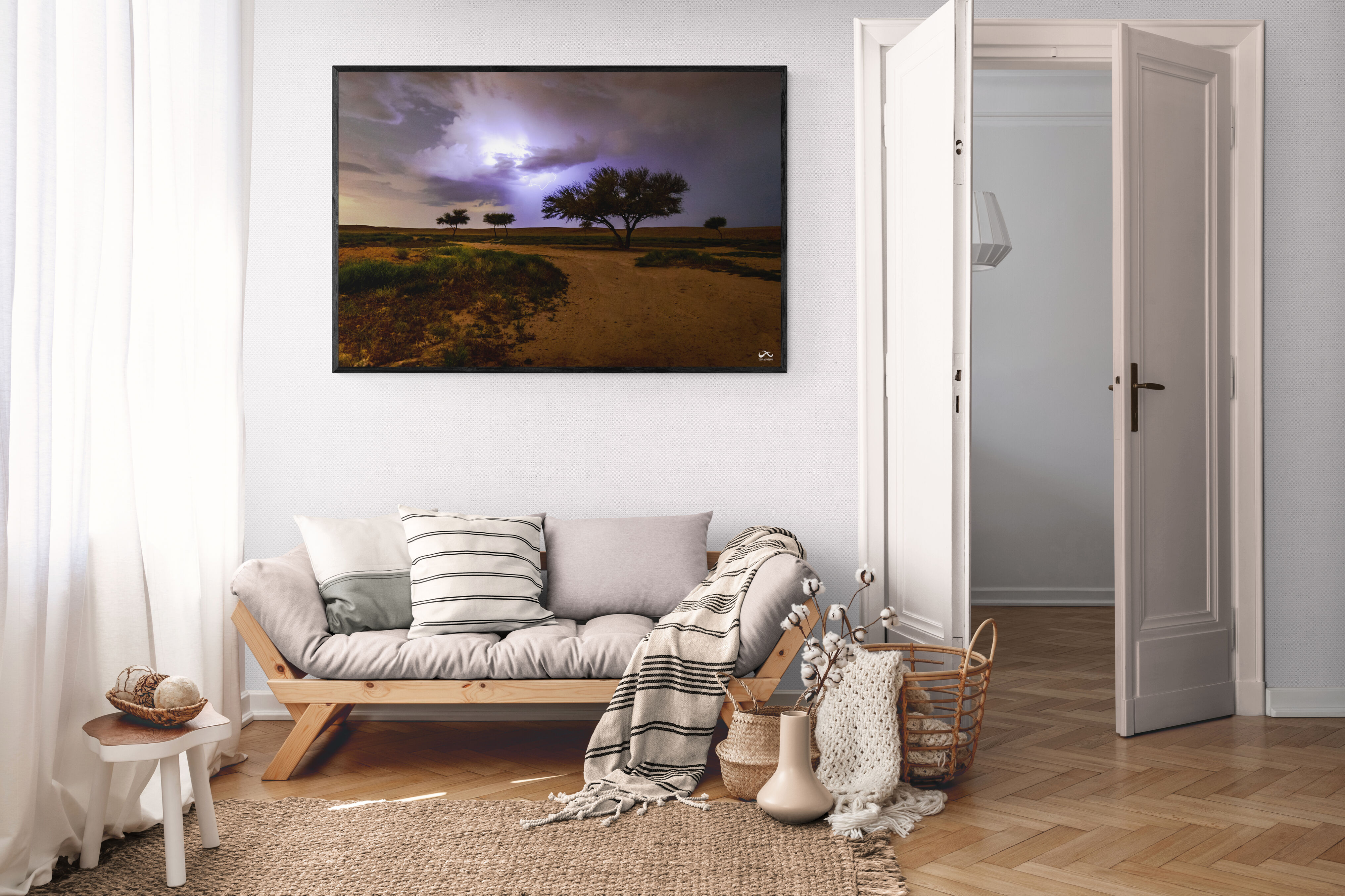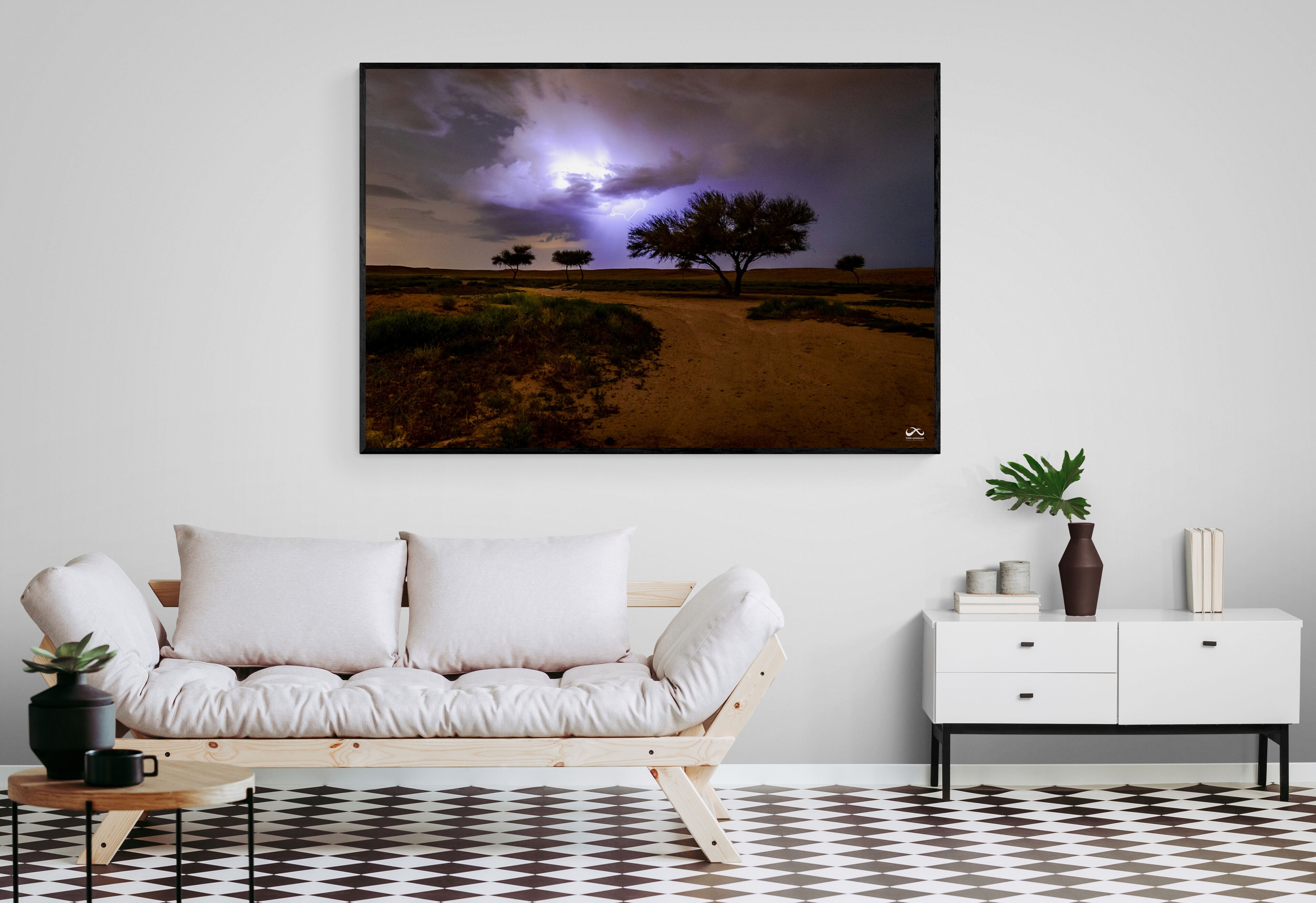 - حل تصميمي للمساحات الفنية: إذا كنت تبحث عن لوحة استثنائية تكسر رتابة المكان أو جدارك يحتاج إلى قطعة فنية تعكس الخيال والجمال الطبيعي، فإن لوحة البرق مع شجرة الطلح هي الحل المثالي. فهي تجعل المساحة تنبض بالحياة والإبداع.