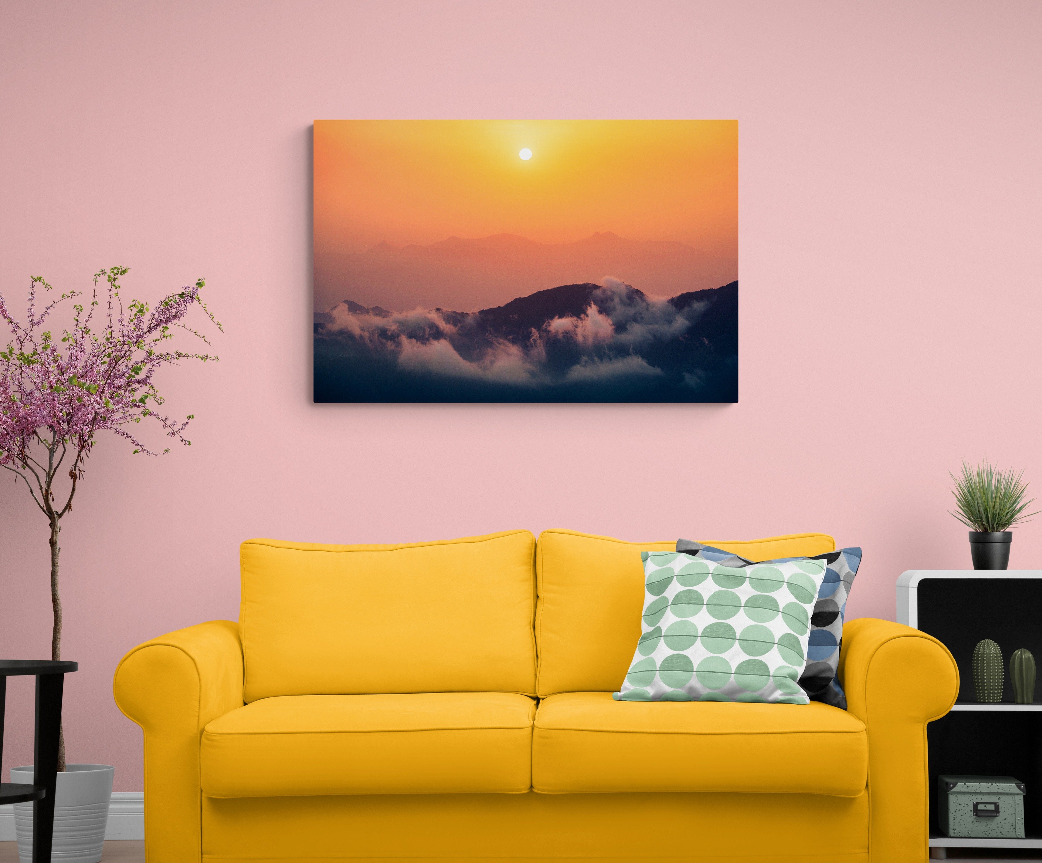 لوحات طبيعة سعودية، جبال عسير، لوحة غروب وسُحب، ديكور كانفس فخم.