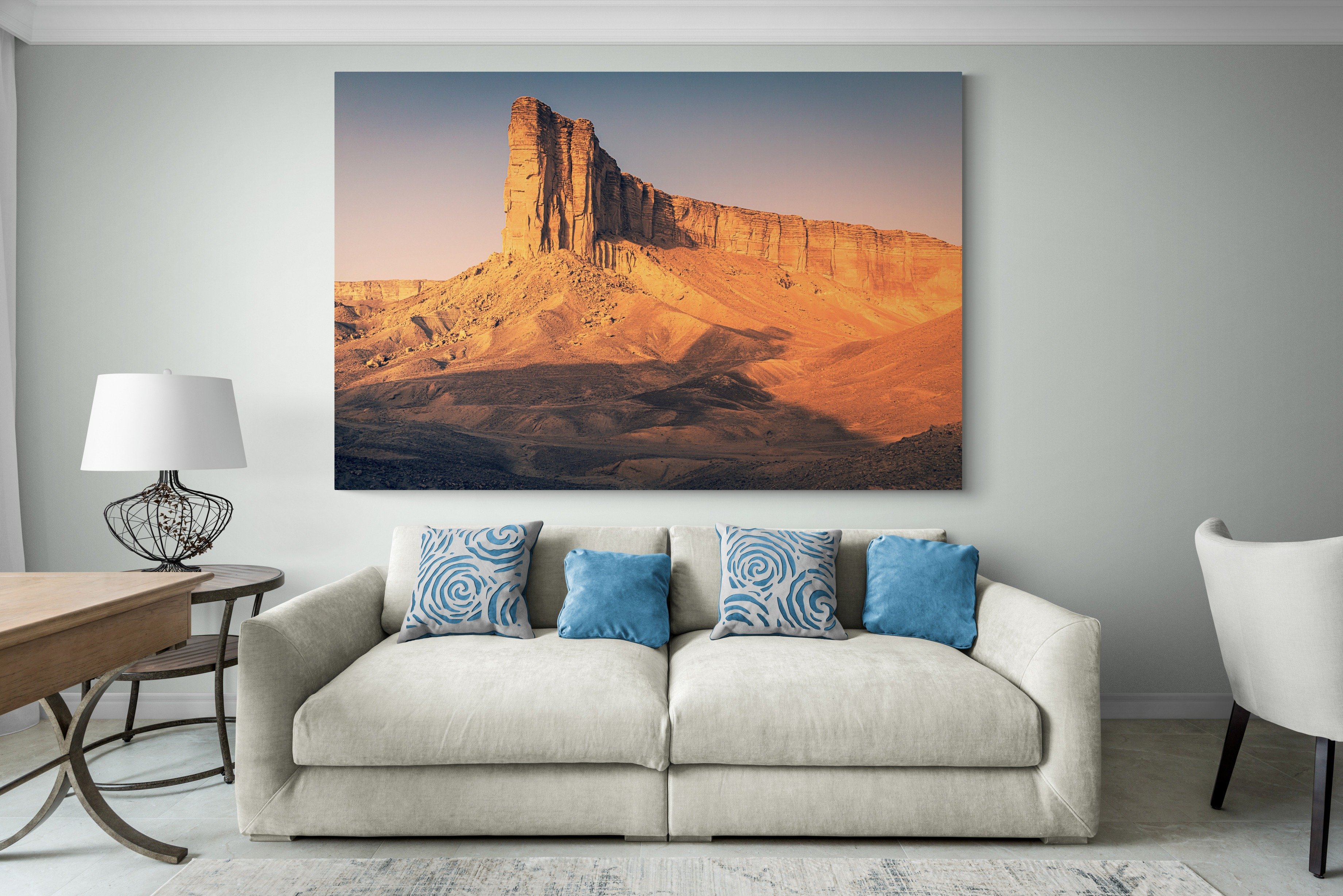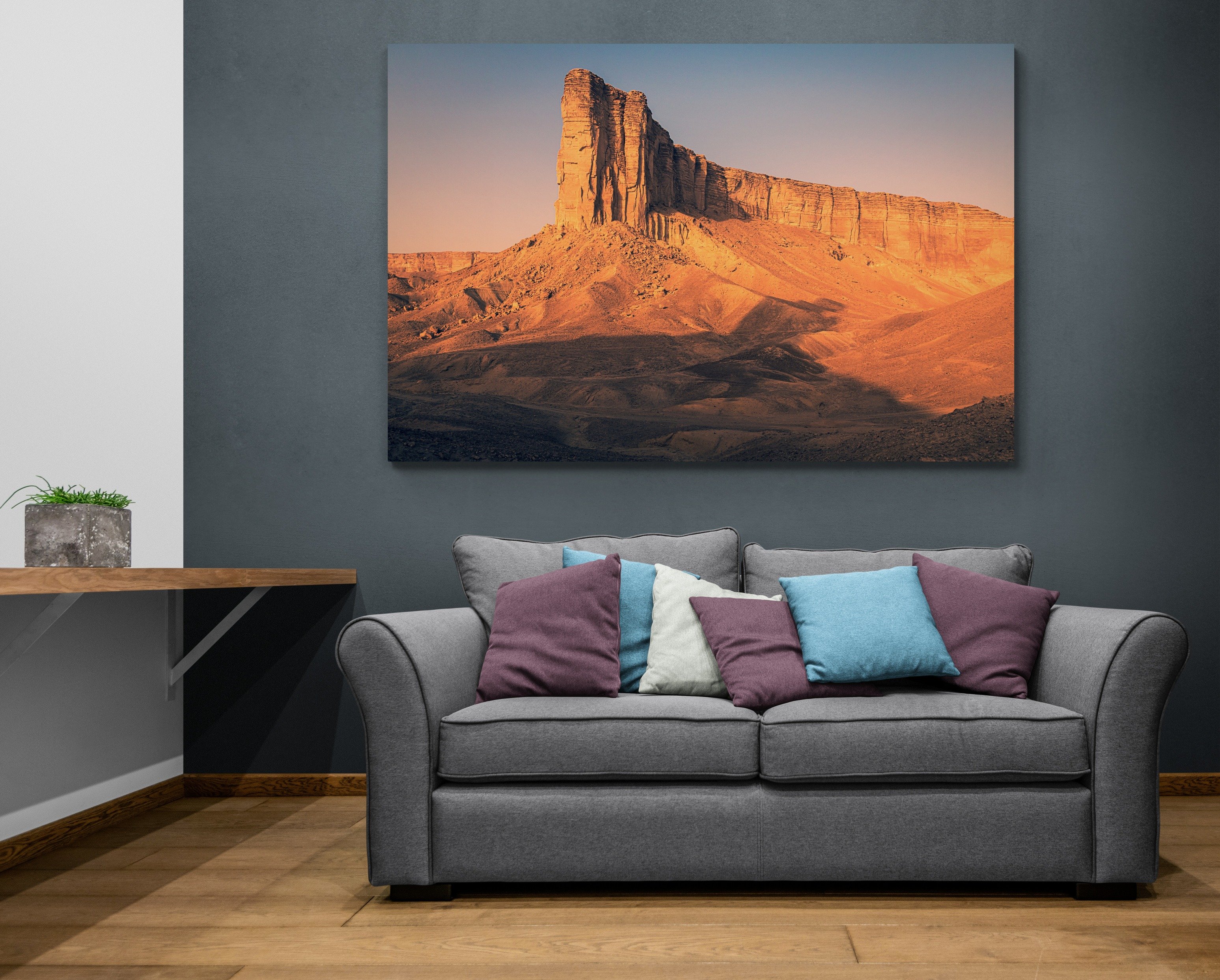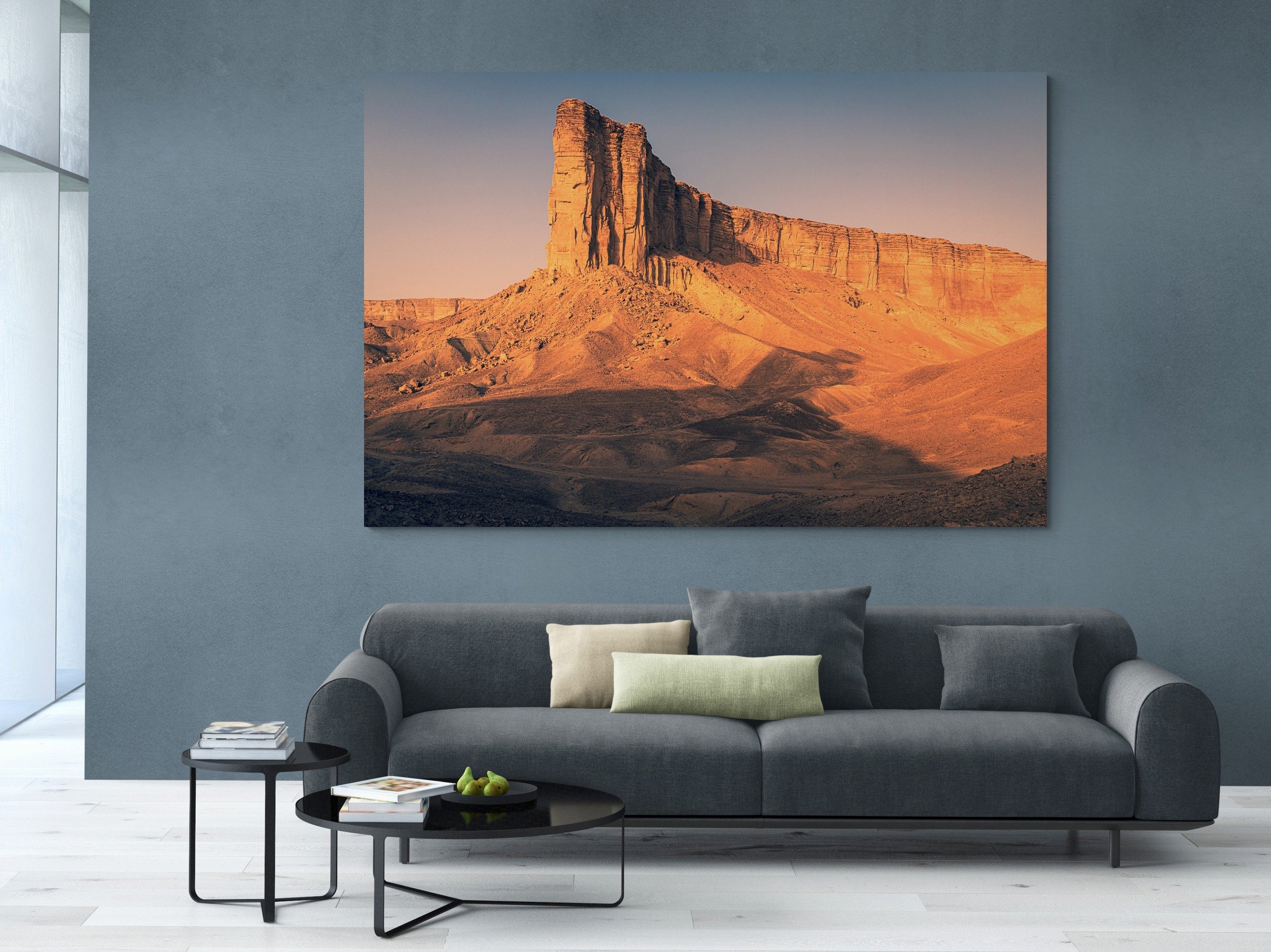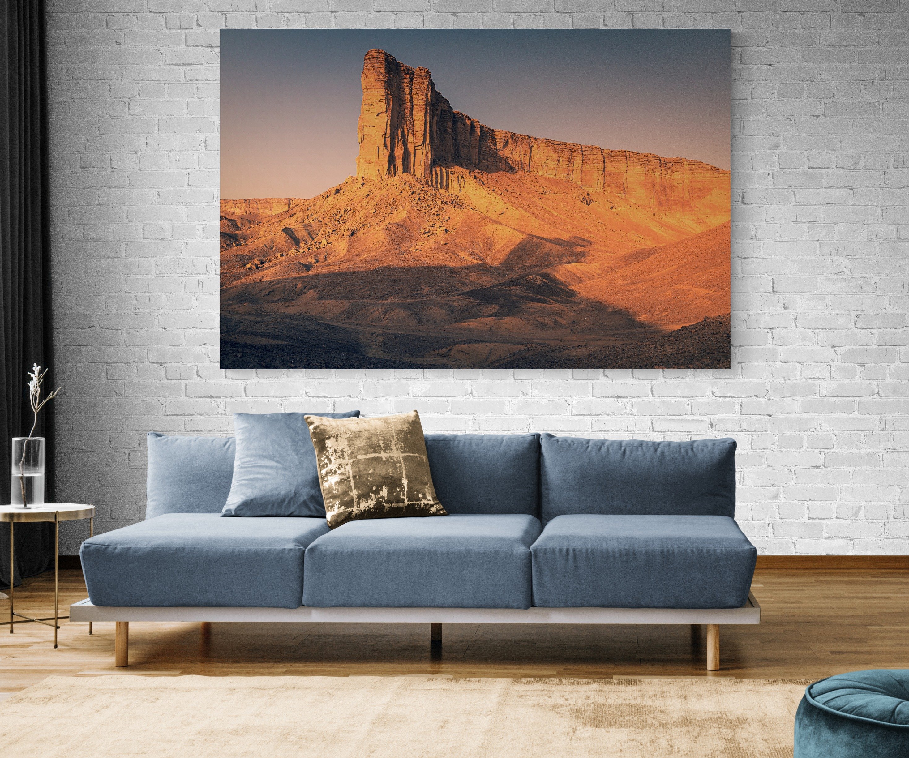 اللوحة مطبوعة على كانفس إيطالي فاخر باستخدام أحبار عالية الجودة وألوان زاهية مقاومة للبهتان، ما يضمن احتفاظها برونقها لسنوات طويلة. المعالجة اللونية مدروسة بدقة لإظهار عمق الظلال وتدرجات الرمل، وإبراز التباين بين الصخر والضوء بطريقة أنيقة وراقية. كل نسخة محدودة ومرقّمة وتحمل شهادة أصالة، لتصبح قطعة فنية نادرة يزداد حضورها وقيمتها بمرور الزمن. إنها ليست مجرد ديكور، بل استثمار جمالي واعتزاز بهوية وطنية.