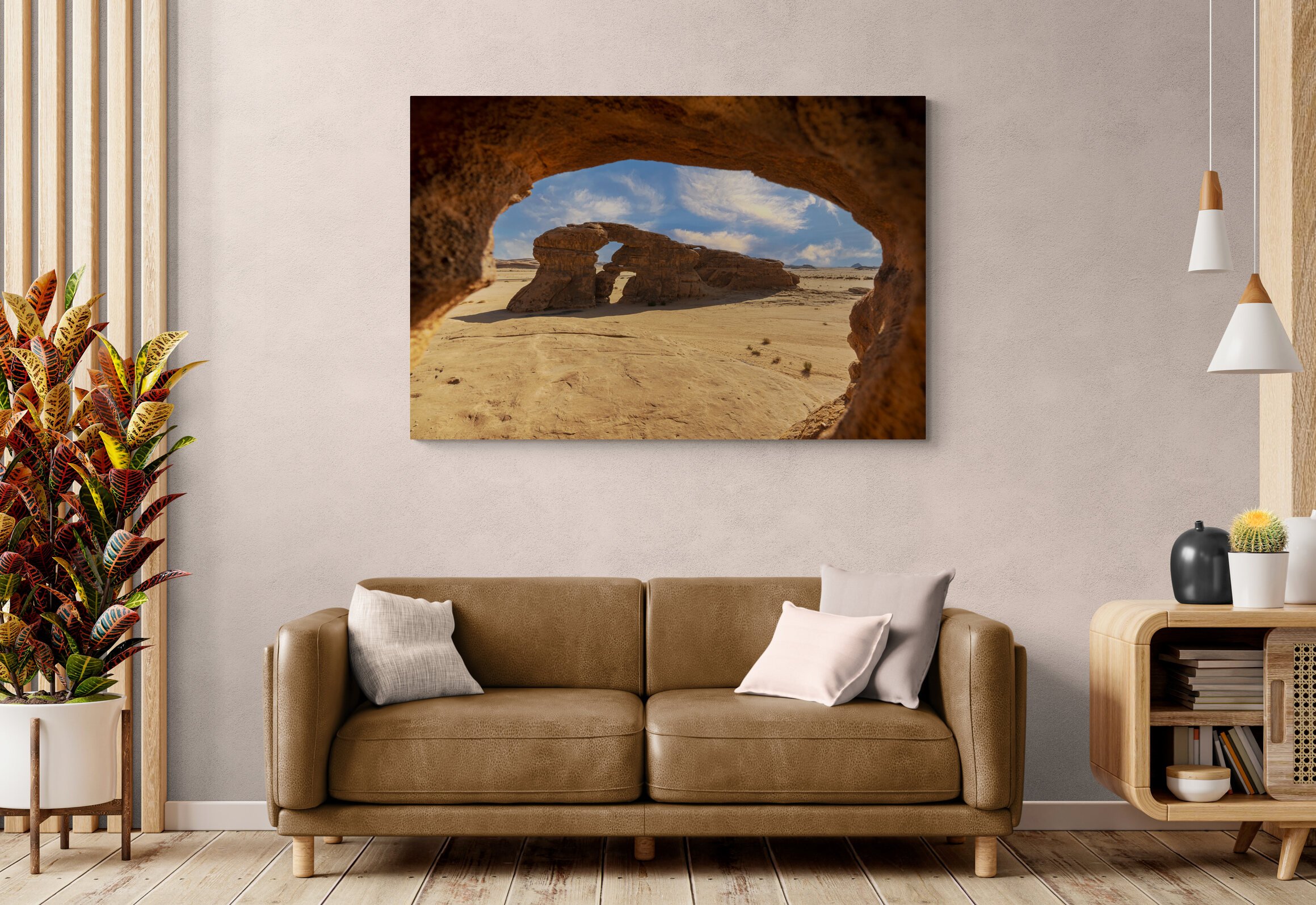 حضور مرتب يخلي لوحة جدارية العلا نقطة لافتة تعكس ذوق يقدّر الطبيعة.