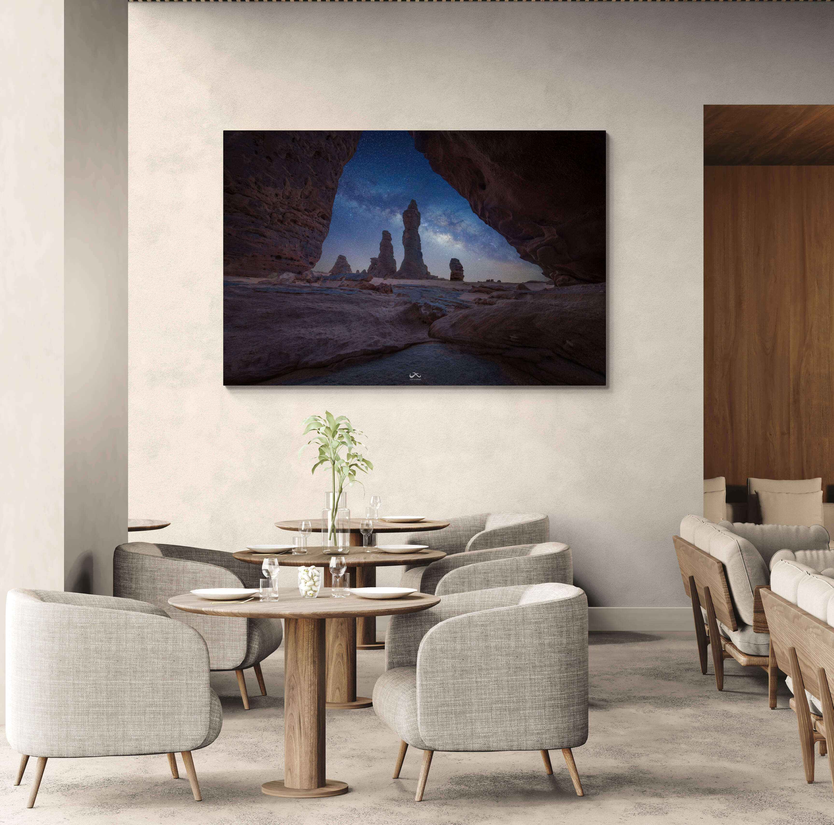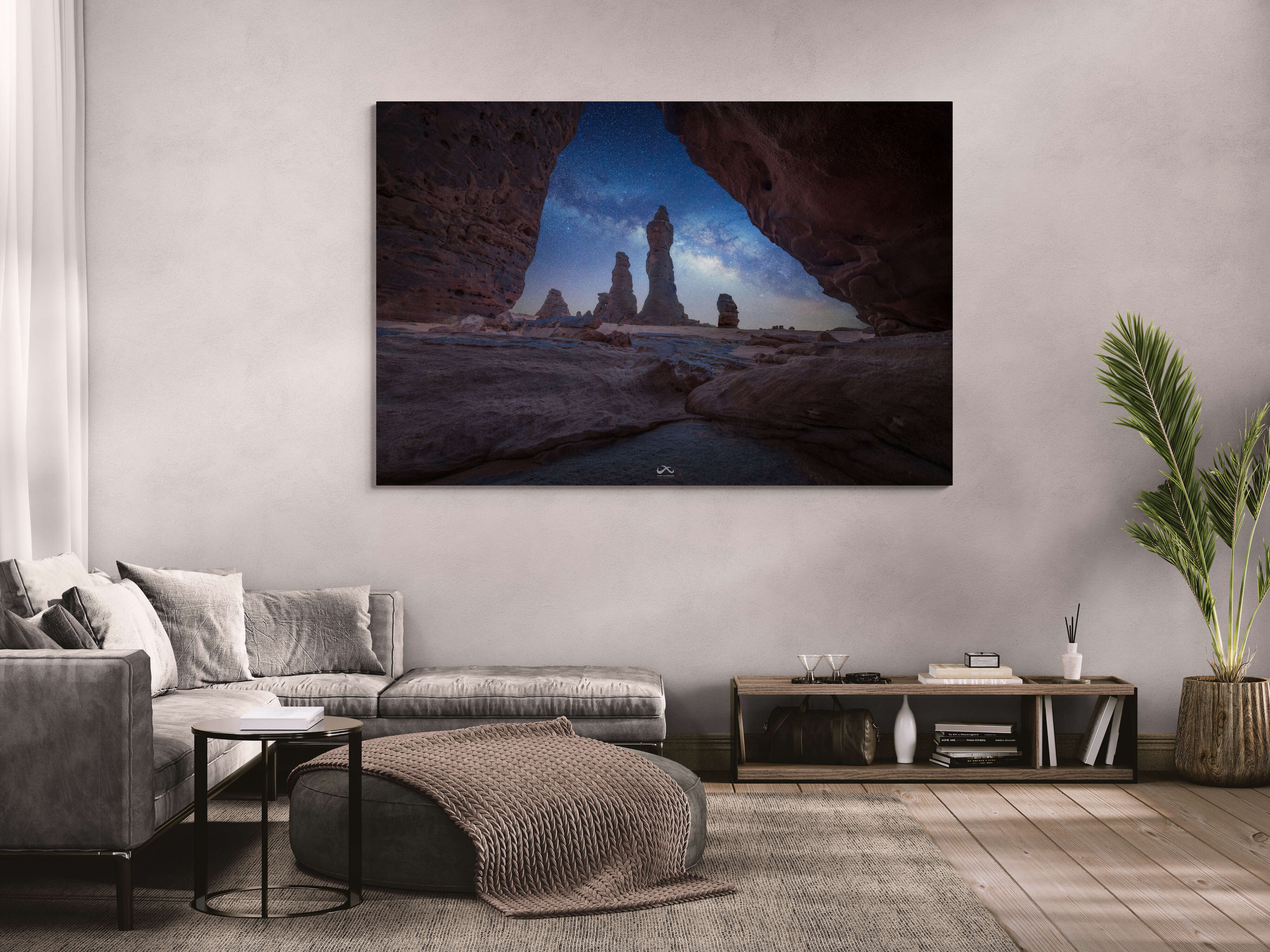 طباعة عالية الجودة على كانفس فاخر، تبرز لمعان النجوم وتدرجات السماء بثبات لوني يدوم مع الوقت، لتناسب المساحات الراقية وتقدم حضور فني يليق باقتناء لوحة من الطبيعة بطابع أصيل وسكون جميل.